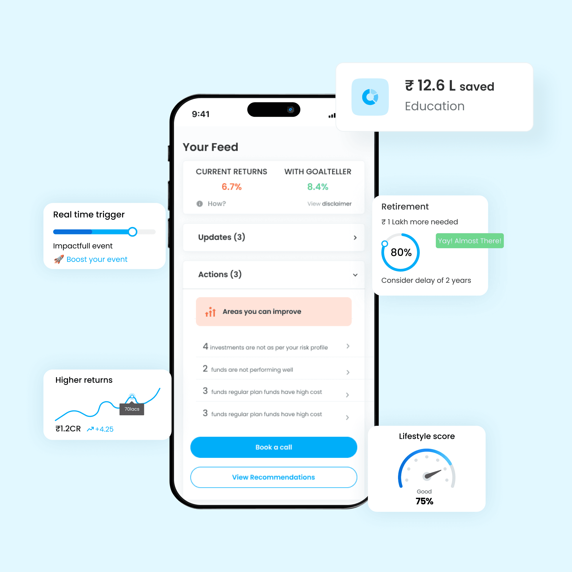 The homepage was revamped to become more user-centric. Key features and entry points were positioned based on user behaviour patterns, ensuring that users could easily find and navigate to relevant sections, such as goal planning and investment management tools.